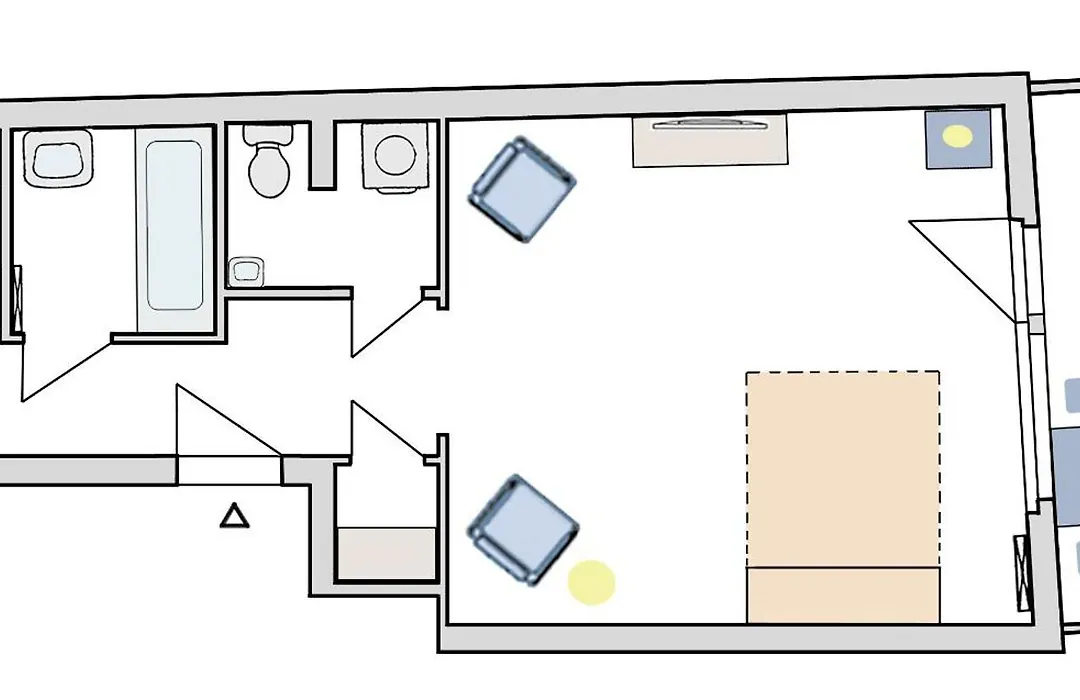 O apartamento vem com uma casa de banho com chuveiro e banheiras.